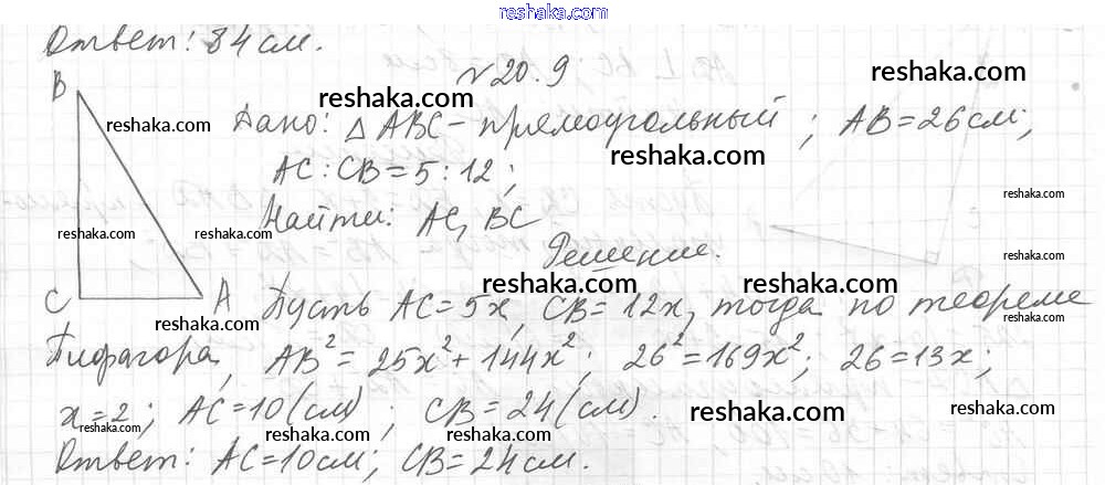Представляем вам сборники по Геометрии, с готовыми ответами к Учебнику Мерзляк школьной программы для учеников восьмой класса. Это не просто гдз с ответом, а с подсказками, как верно решить § 20. Теорема Пифагора Глава 4. Решение прямоугольных треугольников 9. Проверяй домашку с умом и получай высший балл!