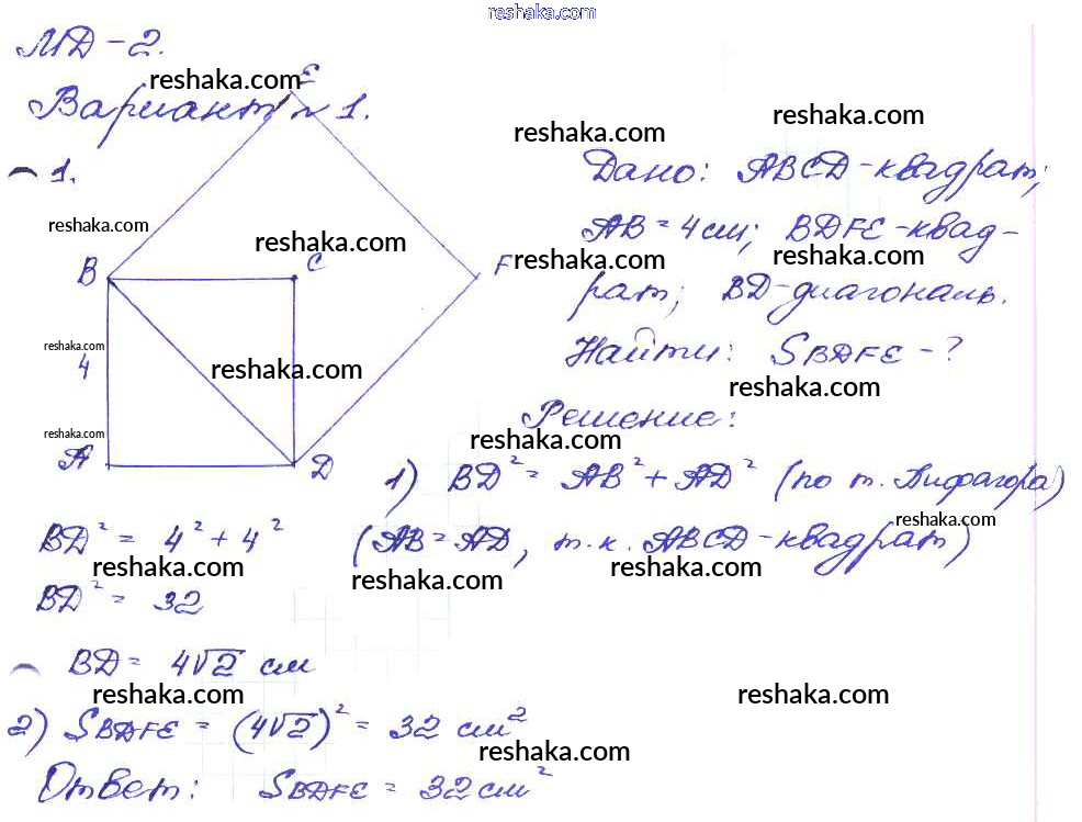 Представляем вам сборники по Геометрии, с готовыми ответами к Дидактическим материалам Зив школьной программы для учеников восьмой класса. Это не просто гдз с ответом, а с подсказками, как верно решить Вариант №1 МД №2 1. Проверяй домашку с умом и получай высший балл!