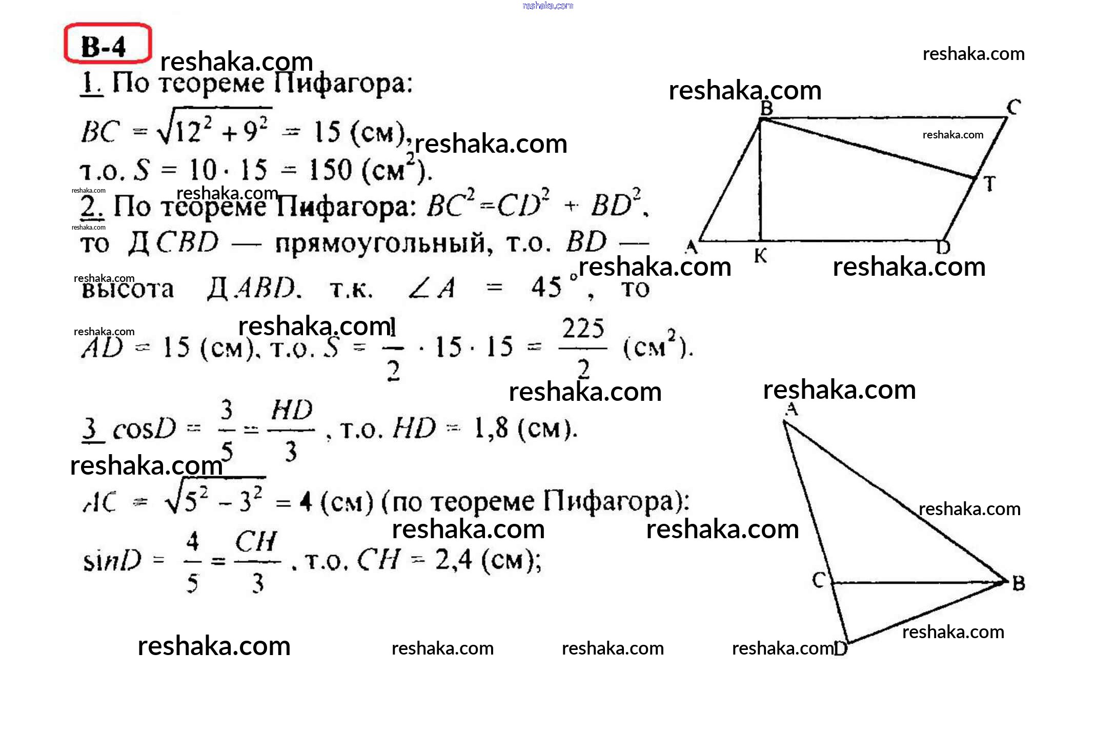 Решака - онлайн ответы Геометрия Зив, Мейлер за 8 класс Дидактические материалы ФГОС 2016 - Вариант 4
