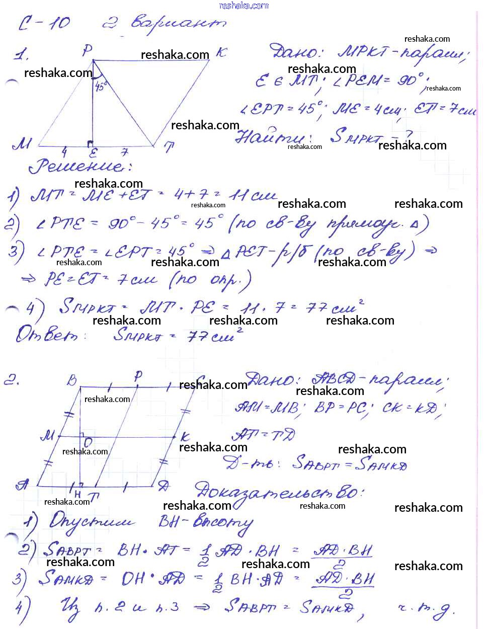 Представляем вам сборники по Геометрии, с готовыми ответами к Дидактическим материалам Зив школьной программы для учеников восьмой класса. Это не просто гдз с ответом, а с подсказками, как верно решить СР №10. Площадь параллелограмма Самостоятельные работы вариант-2. Проверяй домашку с умом и получай высший балл!