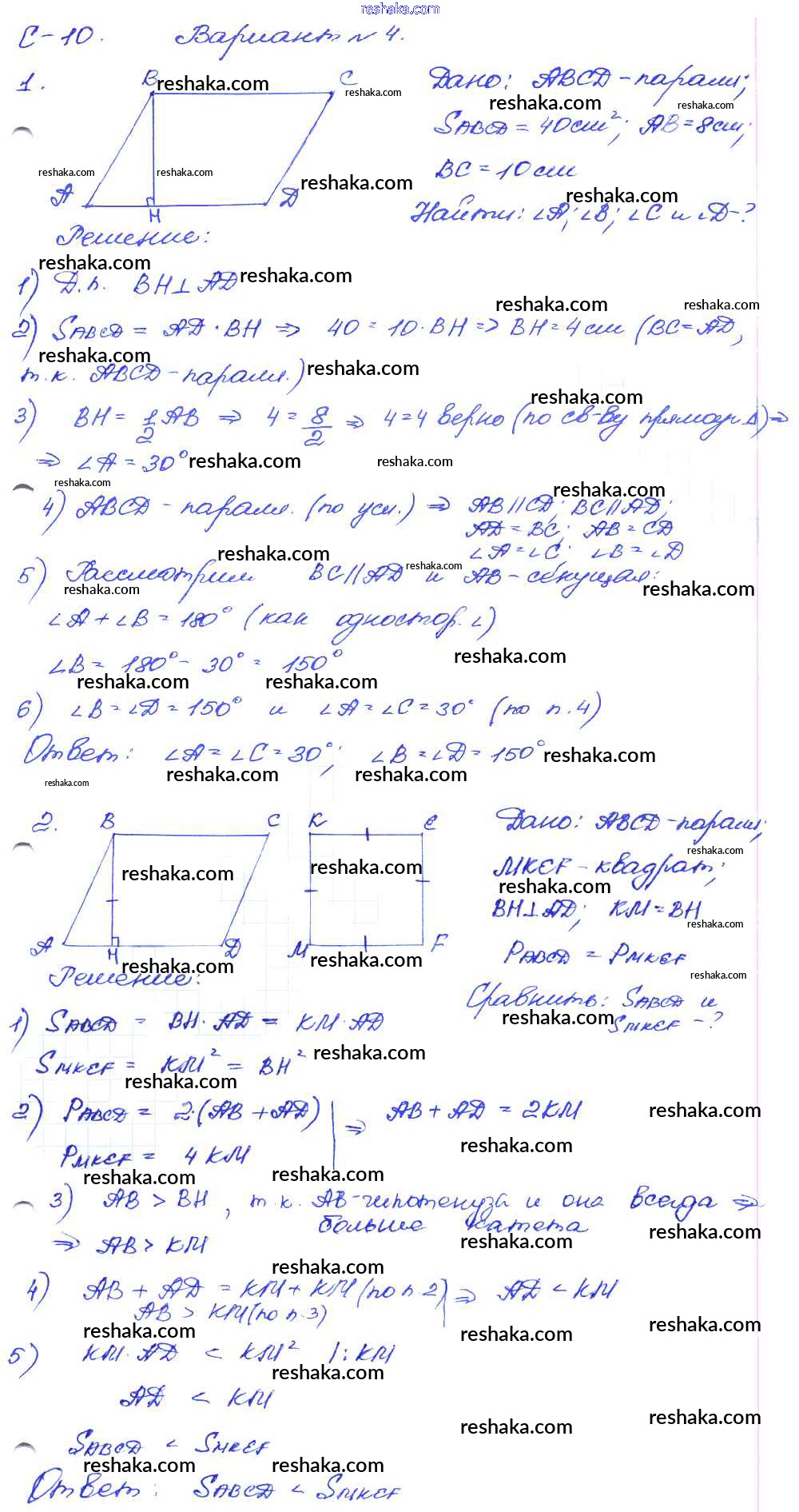 Решака - онлайн ответы Геометрия Зив, Мейлер за 8 класс Дидактические материалы ФГОС 2016 - вариант-4