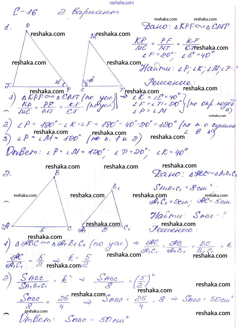 Решака - онлайн ответы Геометрия Зив, Мейлер за 8 класс Дидактические материалы ФГОС 2016 - вариант-2