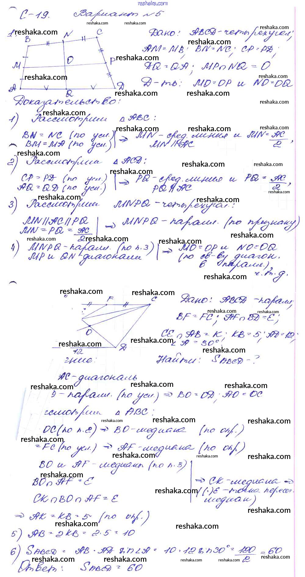 Решака - онлайн ответы Геометрия Зив, Мейлер за 8 класс Дидактические материалы ФГОС 2016 - вариант-5