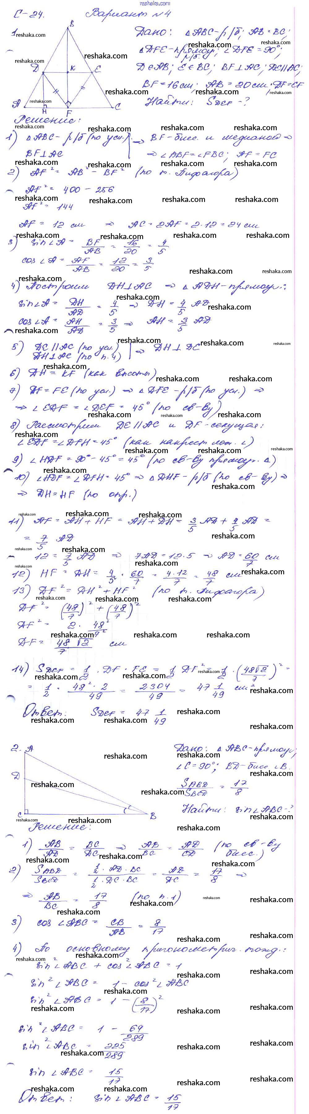 Решака - онлайн ответы Геометрия Зив, Мейлер за 8 класс Дидактические материалы ФГОС 2016 - вариант-4
