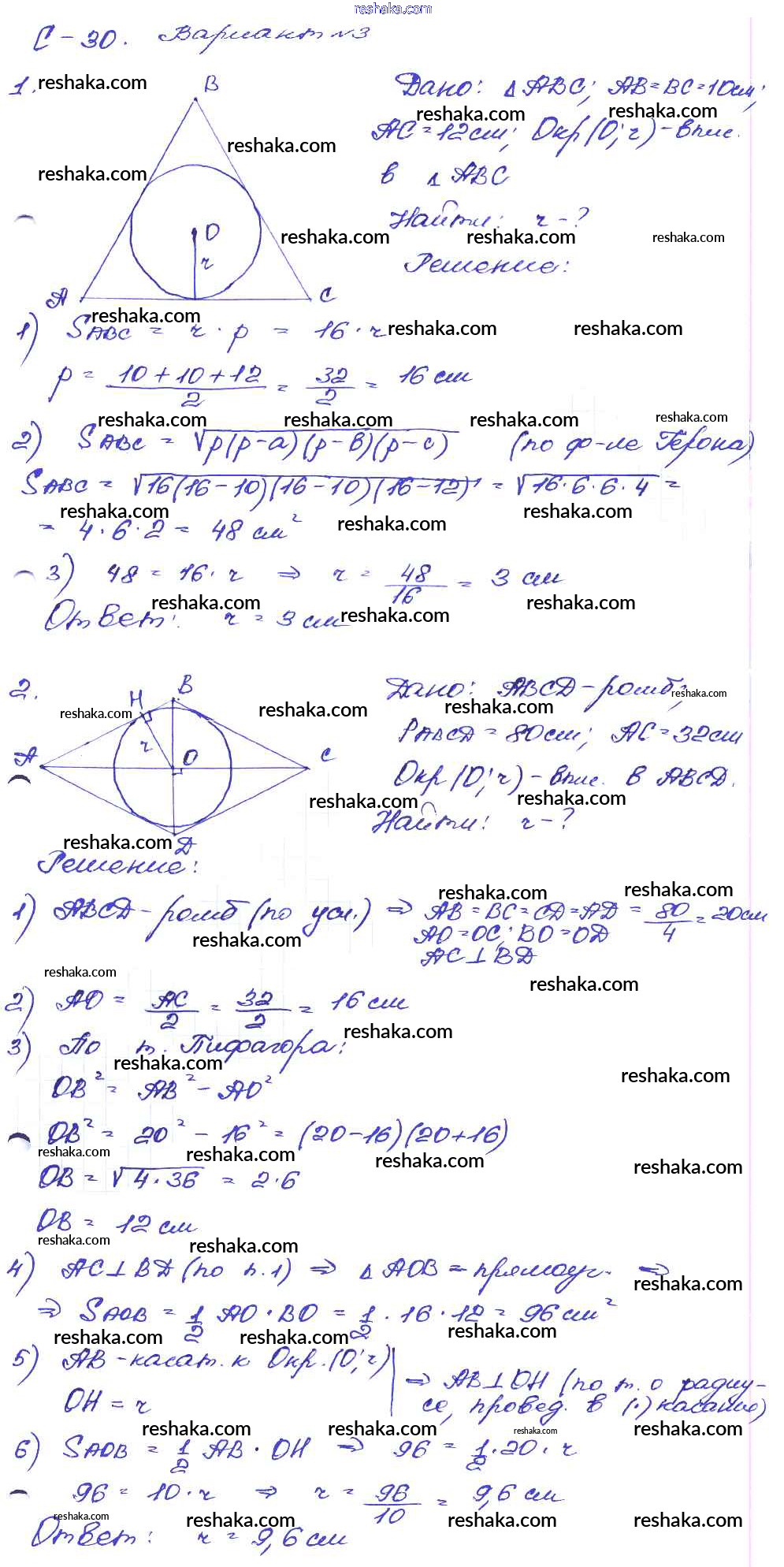 Решака - онлайн ответы Геометрия Зив, Мейлер за 8 класс Дидактические материалы ФГОС 2016 - вариант-3