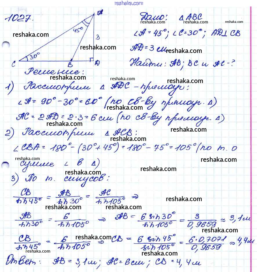 Решака - онлайн ответы Геометрия Атанасян, Бутузов за 7-9 класс Учебник ФГОС 2010 - 1027