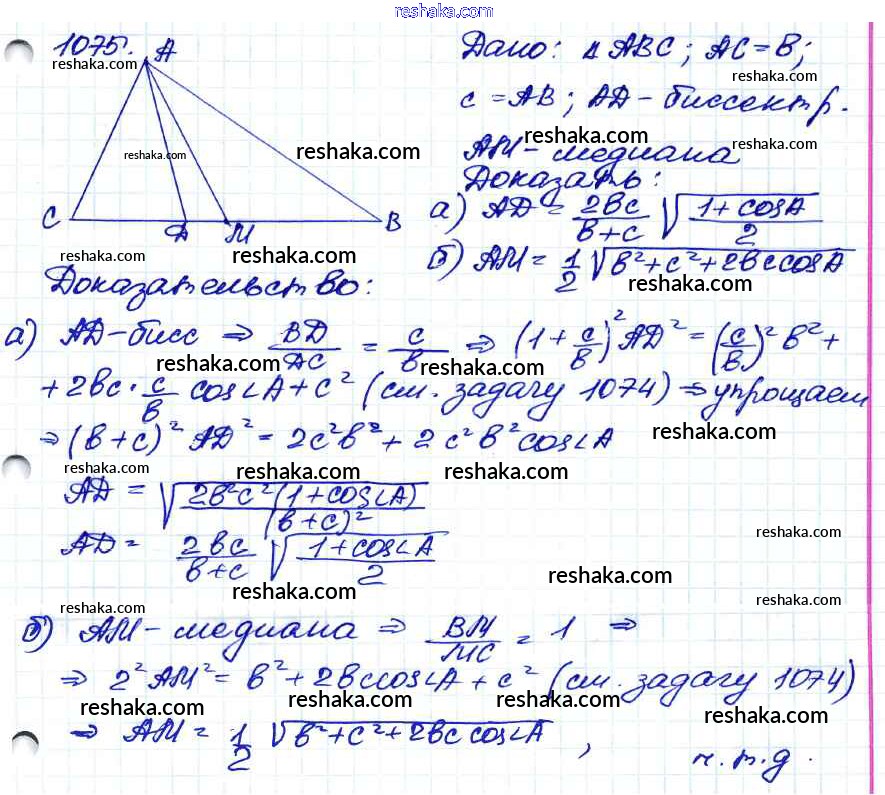 Решака - онлайн ответы Геометрия Атанасян, Бутузов за 7-9 класс Учебник ФГОС 2010 - 1075