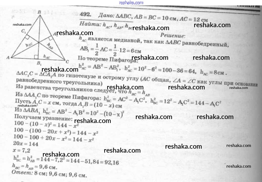 Решака - онлайн ответы Геометрия Атанасян, Бутузов за 7-9 класс Учебник ФГОС 2010 - 492