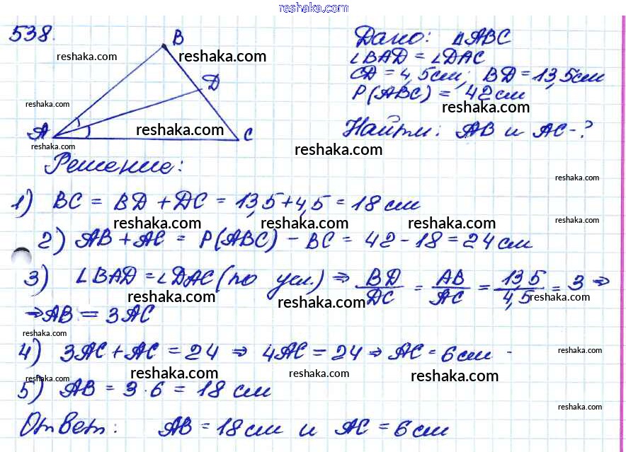 Решака - онлайн ответы Геометрия Атанасян, Бутузов за 7-9 класс Учебник ФГОС 2010 - 538