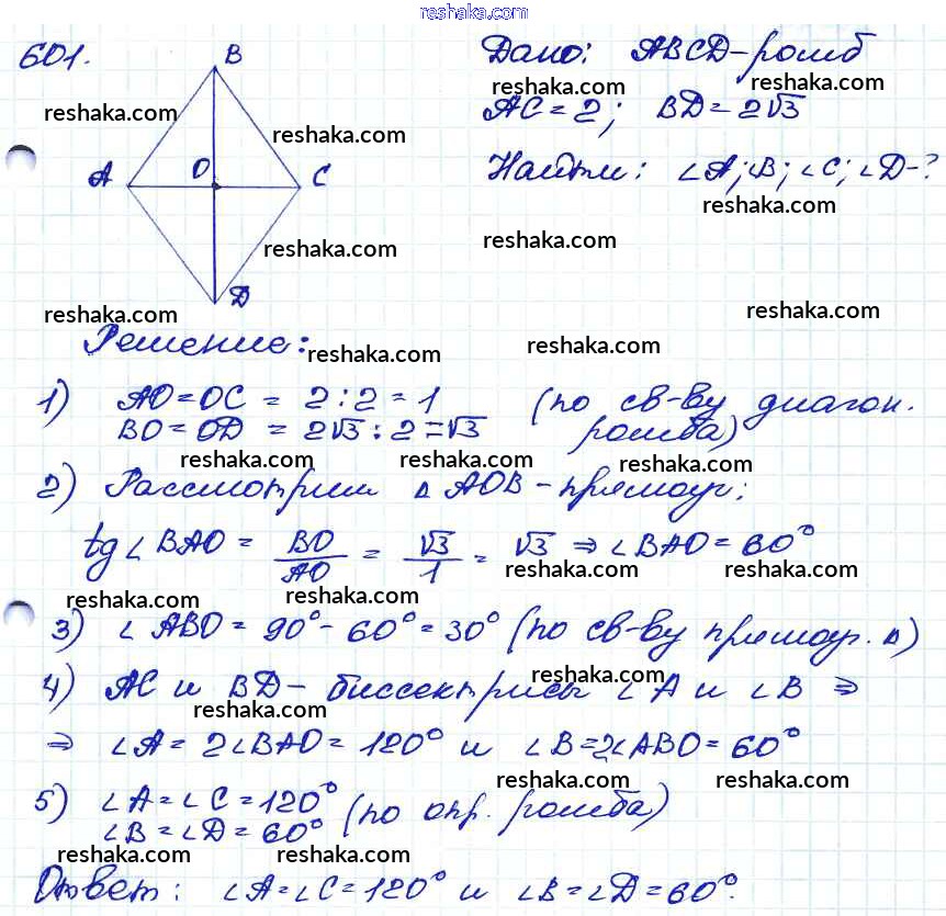 Решака - онлайн ответы Геометрия Атанасян, Бутузов за 7-9 класс Учебник ФГОС 2010 - 601