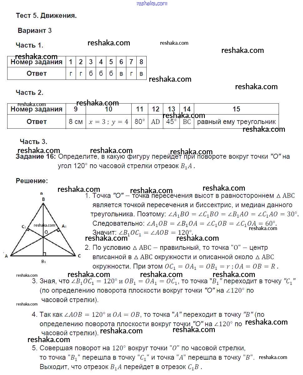 Решака - онлайн ответы Геометрия Фарков за 9 класс Тесты ФГОС 2016 - 3