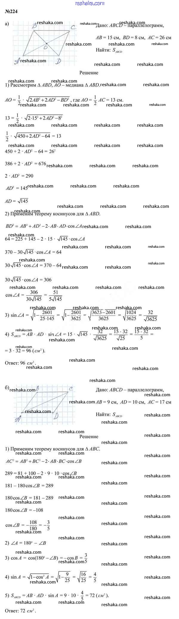 Решака - онлайн ответы Геометрия Казаков за 9 класс Учебник 2019 - 224