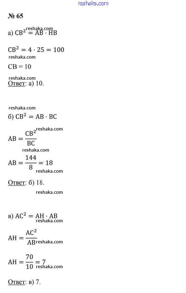 Представляем вам сборники по Геометрии, с готовыми ответами к Учебнику Казаков школьной программы для учеников девятый класса. Это не просто гдз с ответом, а с подсказками, как верно решить Задачи 65. Проверяй домашку с умом и получай высший балл!
