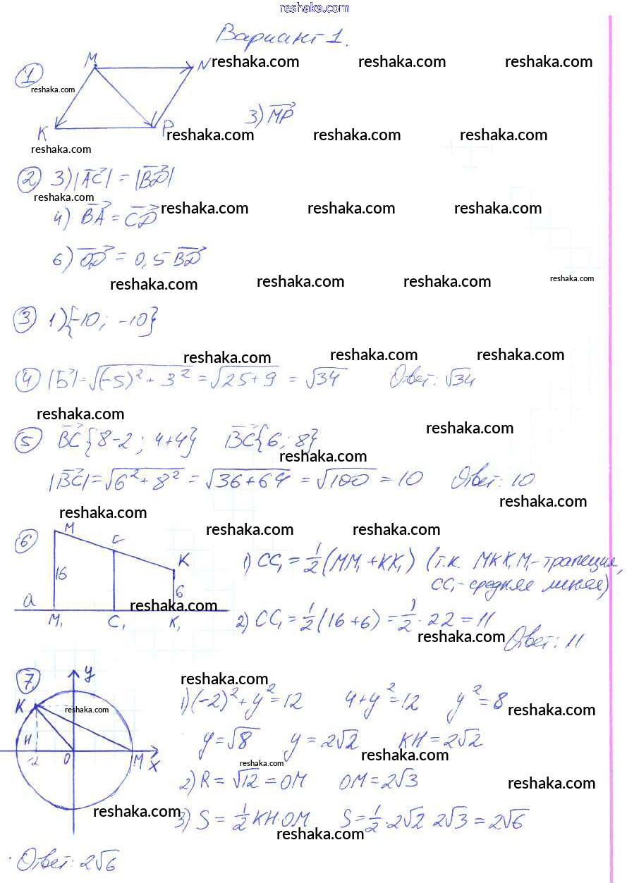 Решака - онлайн ответы Геометрия Мельникова за 9 класс Контрольные работы ФГОС 2016 - 2