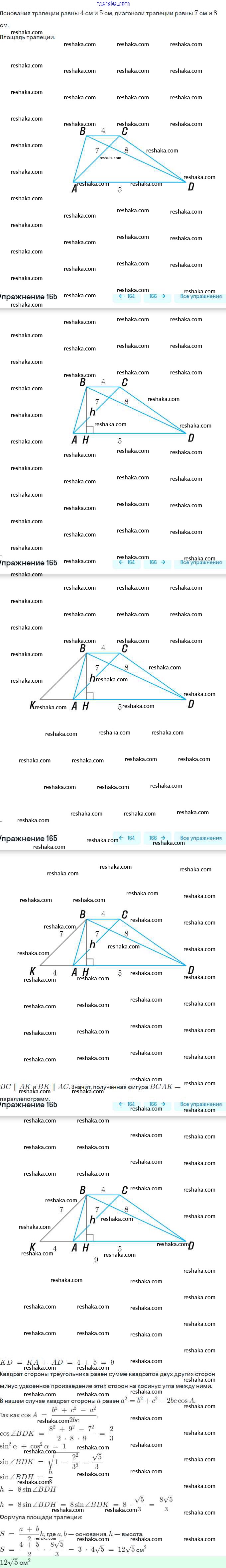 Решака - онлайн ответы Геометрия Мерзляк, Полонский за 9 класс Учебник ФГОС 2016 - 165