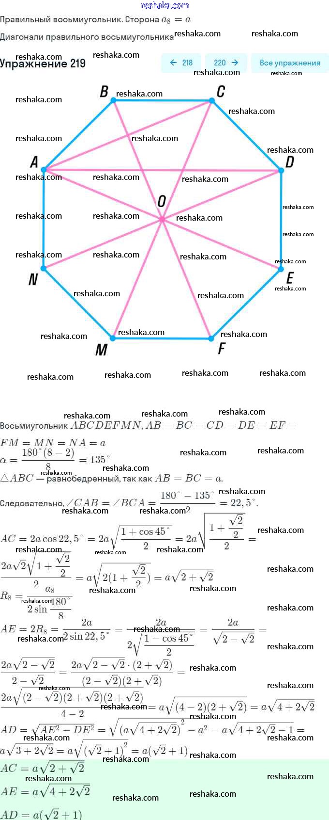 Решака - онлайн ответы Геометрия Мерзляк, Полонский за 9 класс Учебник ФГОС 2016 - 219