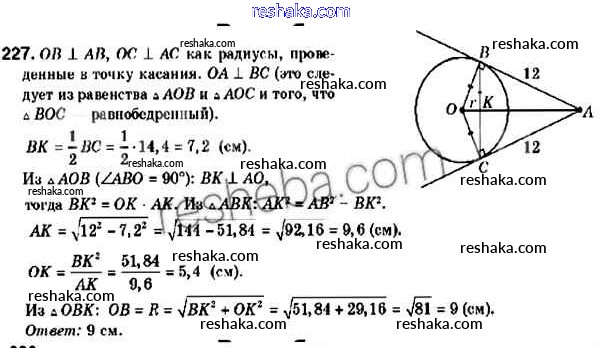 Решака - онлайн ответы Геометрия Мерзляк, Полонский за 9 класс Учебник ФГОС 2016 - 227