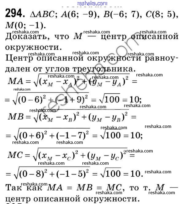 Решака - онлайн ответы Геометрия Мерзляк, Полонский за 9 класс Учебник ФГОС 2016 - 294