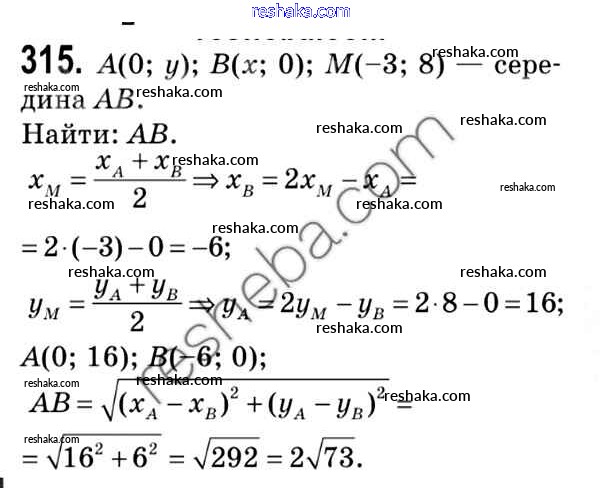 Решака - онлайн ответы Геометрия Мерзляк, Полонский за 9 класс Учебник ФГОС 2016 - 315