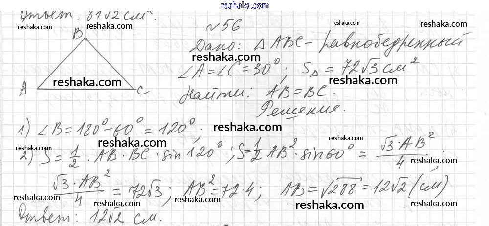 Представляем вам сборники по Геометрии, с готовыми ответами к Дидактическим материалам Мерзляк школьной программы для учеников девятый класса. Это не просто гдз с ответом, а с подсказками, как верно решить Вариант 2. Упражнения 56. Проверяй домашку с умом и получай высший балл!