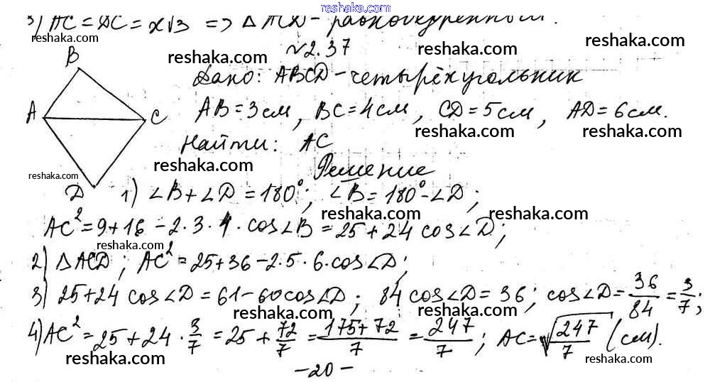 Решака - онлайн ответы Геометрия Мерзляк, Поляков за 9 класс Учебник Углубленный уровень ФГОС 2019 - 2.37