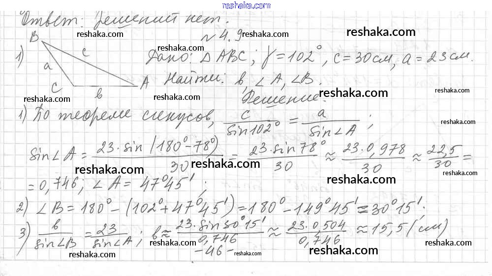 Представляем вам сборники по Геометрии, с готовыми ответами к Учебнику Мерзляк школьной программы для учеников девятый класса. Это не просто гдз с ответом, а с подсказками, как верно решить §4 Глава 1. Решение треугольников 4.9. Проверяй домашку с умом и получай высший балл!