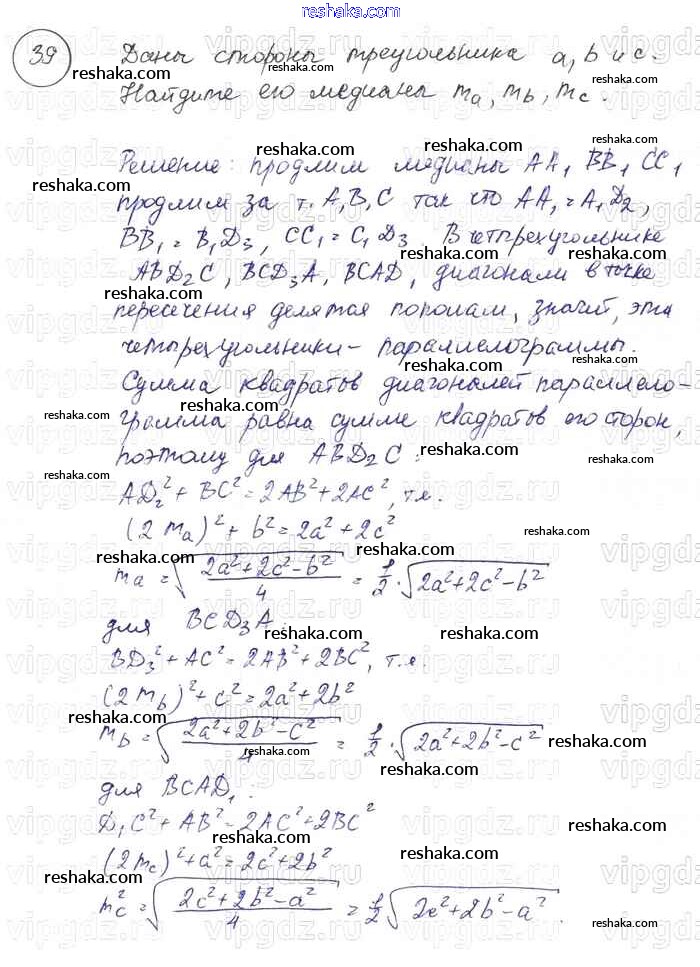 Решака - онлайн ответы Геометрия Погорелов за 7-9 класс Учебник ФГОС 2014 - 39