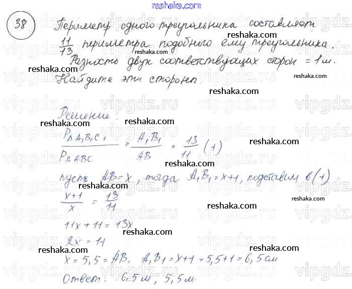 Представляем вам сборники по Геометрии, с готовыми ответами к Учебнику Погорелов школьной программы для учеников седьмой-девятый класса. Это не просто гдз с ответом, а с подсказками, как верно решить §11. Подобие фигур 38. Проверяй домашку с умом и получай высший балл!