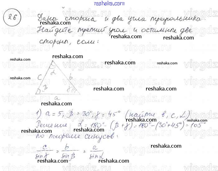 Представляем вам сборники по Геометрии, с готовыми ответами к Учебнику Погорелов школьной программы для учеников седьмой-девятый класса. Это не просто гдз с ответом, а с подсказками, как верно решить §12. Решение треугольников 26. Проверяй домашку с умом и получай высший балл!