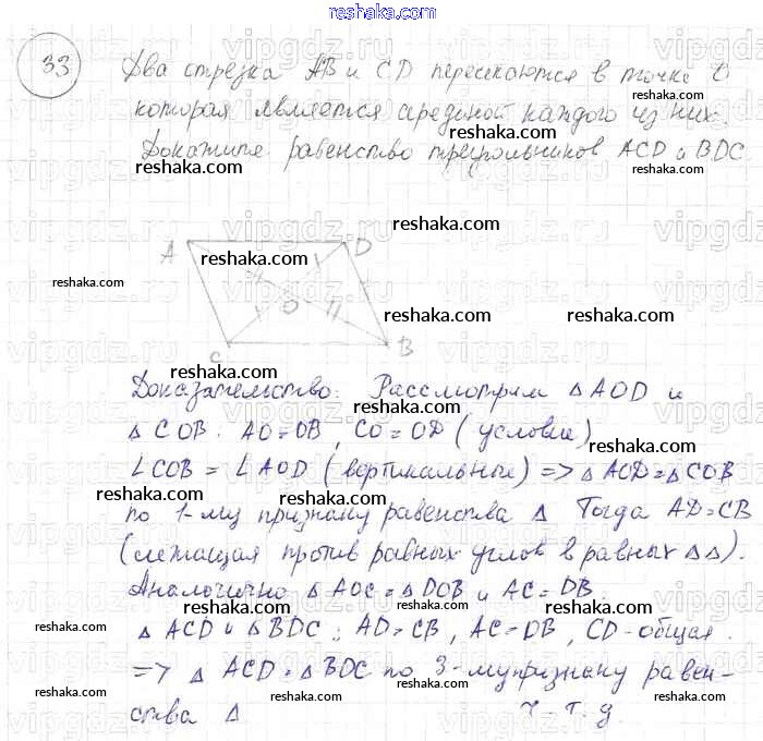 Представляем вам сборники по Геометрии, с готовыми ответами к Учебнику Погорелов школьной программы для учеников седьмой-девятый класса. Это не просто гдз с ответом, а с подсказками, как верно решить §3. Признаки равенства треугольников 33. Проверяй домашку с умом и получай высший балл!