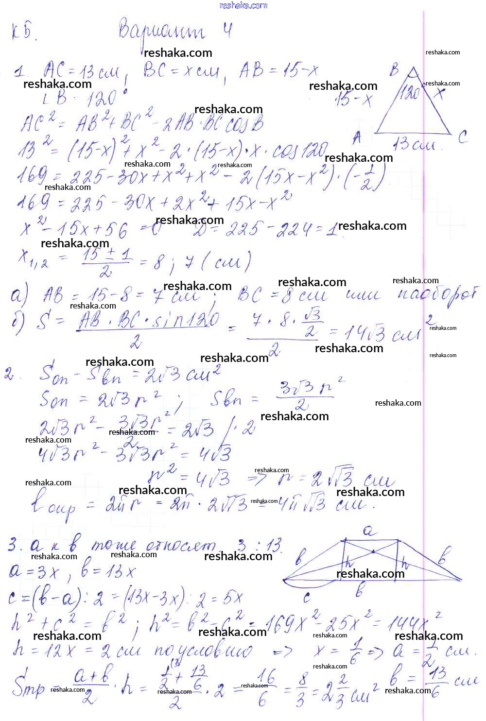 Решака - онлайн ответы Геометрия Журавлев, Малышева за 9 класс Контрольные и самостоятельные работы ФГОС 2016 - 4