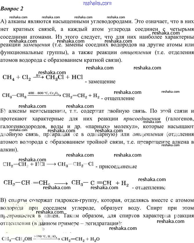 Представляем вам сборники по Химии, с готовыми ответами к Учебнику Габриелян школьной программы для учеников десятый класса. Это не просто гдз с ответом, а с подсказками, как верно решить §8. Типы химических реакций в органической химии 2. Проверяй домашку с умом и получай высший балл!