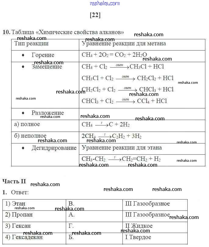 Решака - онлайн ответы Химия Габриелян, Сладков за 10 класс Рабочая тетрадь Базовый уровень ФГОС 2017 - 22