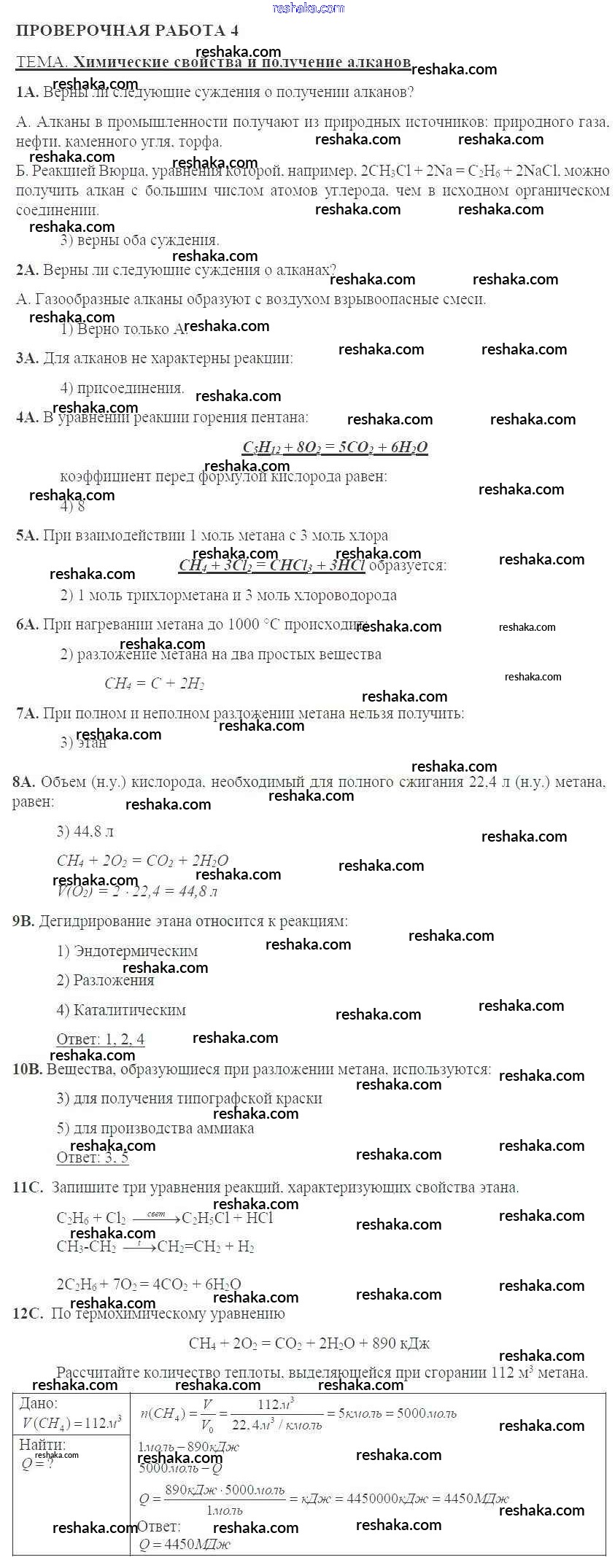 Решака - онлайн ответы Химия Габриелян, Купцова за 10 класс Тетрадь для оценки качества знаний ФГОС 2014 - 4