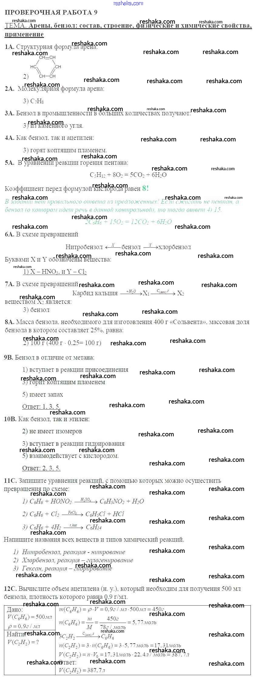 Решака - онлайн ответы Химия Габриелян, Купцова за 10 класс Тетрадь для оценки качества знаний ФГОС 2014 - 9