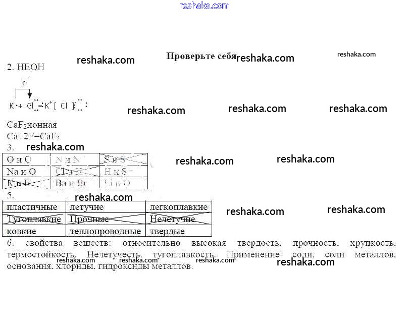 Представляем вам сборники по Химии, с готовыми ответами к Рабочей тетради Габриелян школьной программы для учеников одиннадцатый класса. Это не просто гдз с ответом, а с подсказками, как верно решить Ионная связь. Ионная кристаллическая решетка Проверьте себя. Проверяй домашку с умом и получай высший балл!