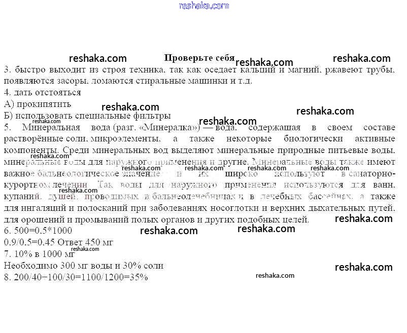 Жидкое состояние веществ. Вода. Массовая доля растворенного вещества / проверьте себя