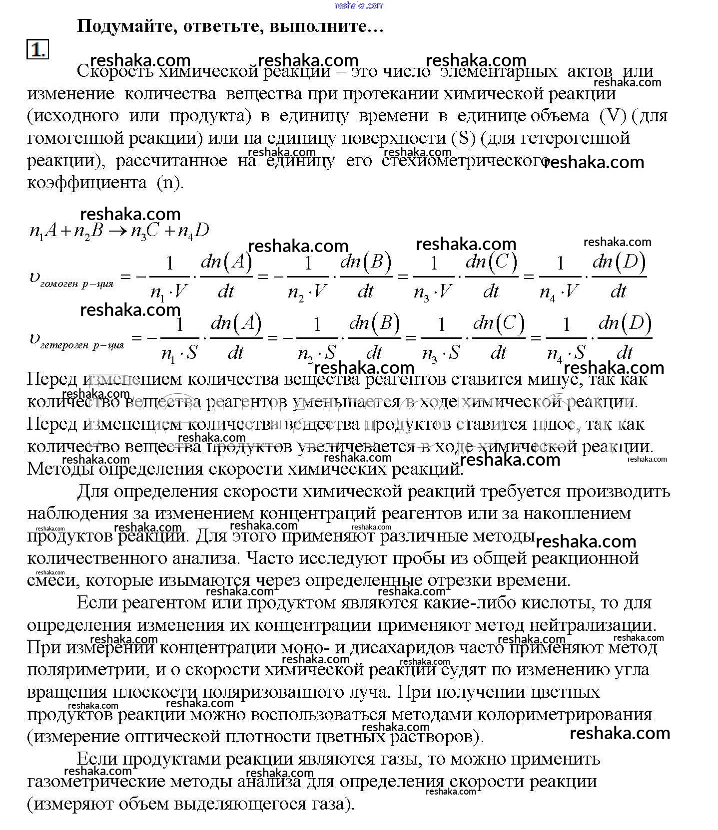 Представляем вам сборники по Химии, с готовыми ответами к Учебнику Рудзитис школьной программы для учеников одиннадцатый класса. Это не просто гдз с ответом, а с подсказками, как верно решить Подумайте, ответьте, выполните § 13. Скорость химических реакций 1. Проверяй домашку с умом и получай высший балл!