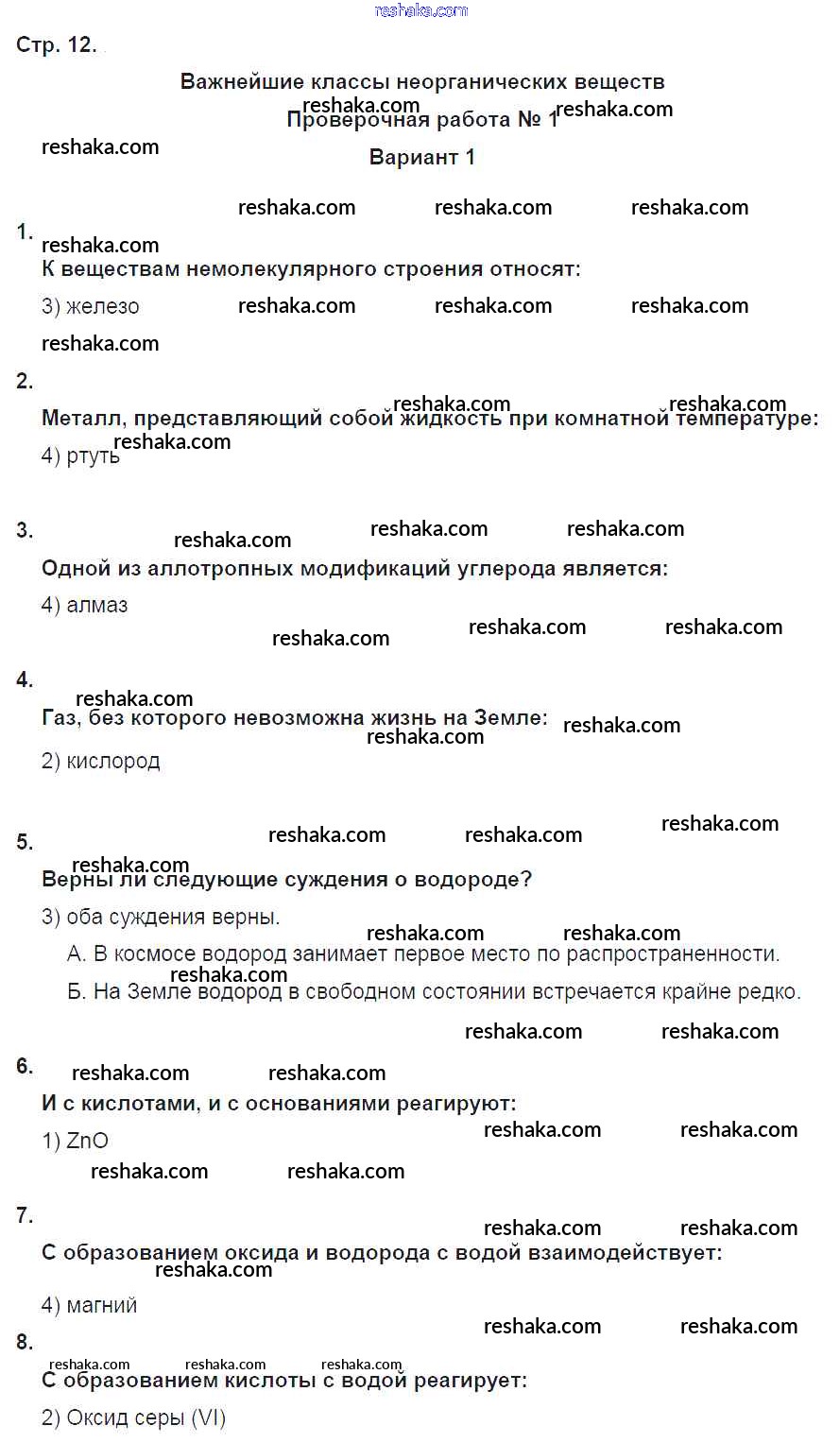 Решака - онлайн ответы Химия Бобылева, Бирюлина за 8 класс Тетрадь-экзаменатор ФГОС 2016 - 12