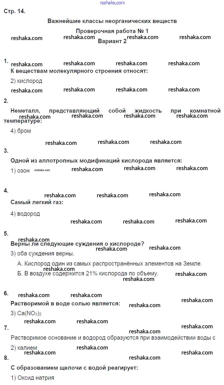 Решака - онлайн ответы Химия Бобылева, Бирюлина за 8 класс Тетрадь-экзаменатор ФГОС 2016 - 14