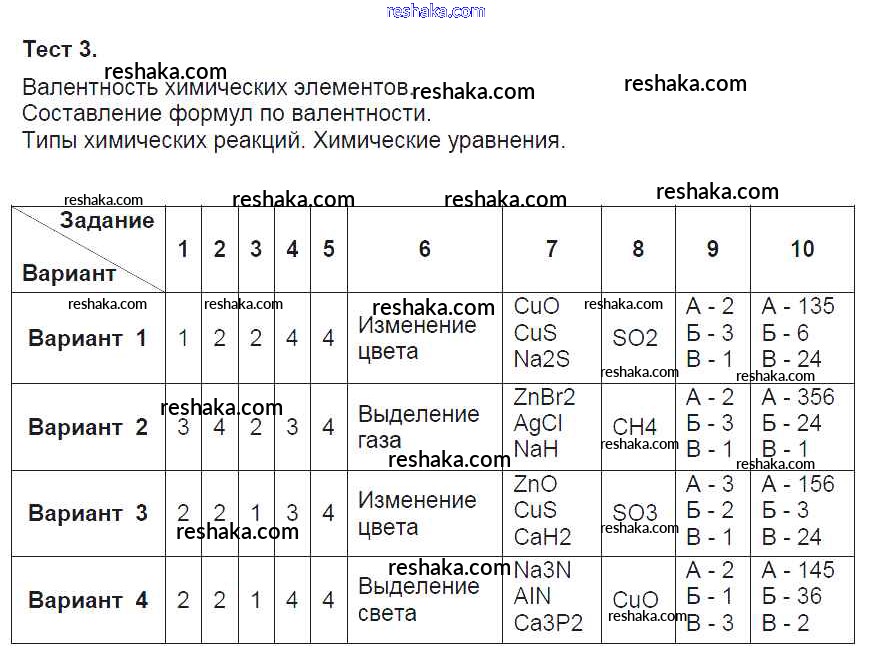 Решака - онлайн ответы Химия Боровских за 8 класс Тесты ФГОС 2013 - Тест 3
