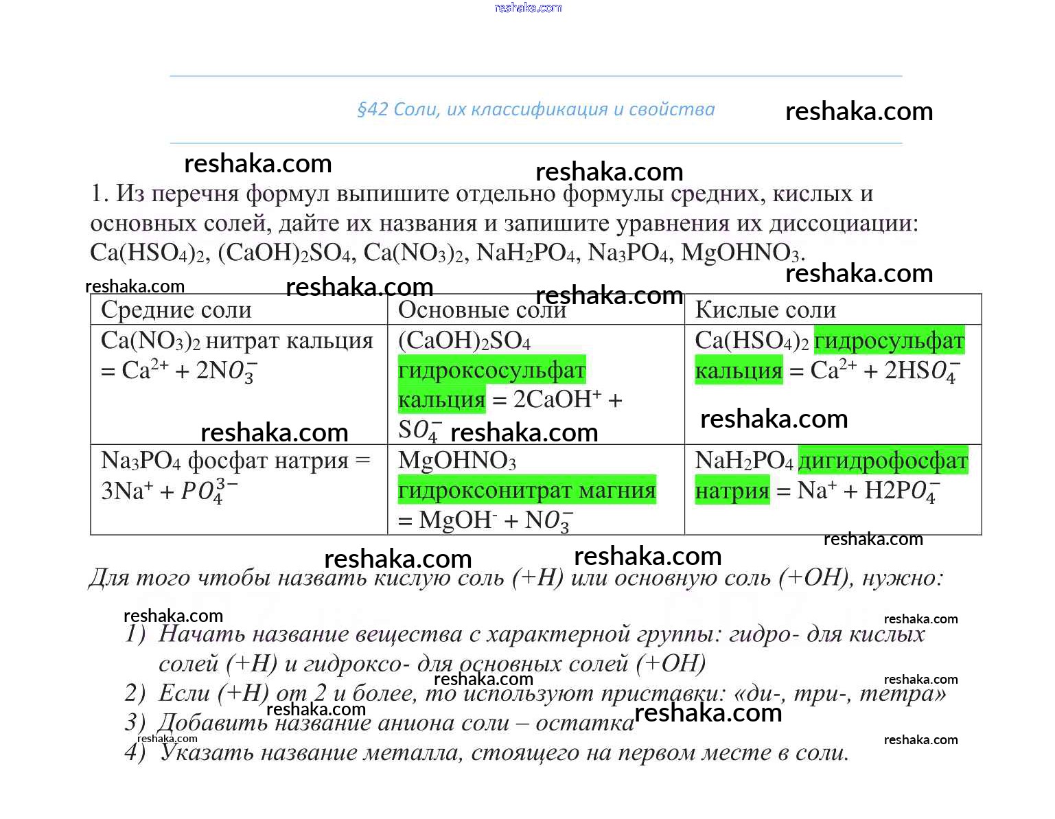 Представляем вам сборники по Химии, с готовыми ответами к Учебнику Габриелян школьной программы для учеников восьмой класса. Это не просто гдз с ответом, а с подсказками, как верно решить §42. Соли, их классификация и свойства 1. Проверяй домашку с умом и получай высший балл!