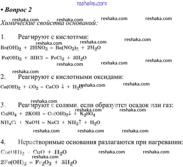 Представляем вам сборники по Химии, с готовыми ответами к Учебнику Габриелян школьной программы для учеников восьмой класса. Это не просто гдз с ответом, а с подсказками, как верно решить §24. Основания, их классификация и химические свойства 2. Проверяй домашку с умом и получай высший балл!