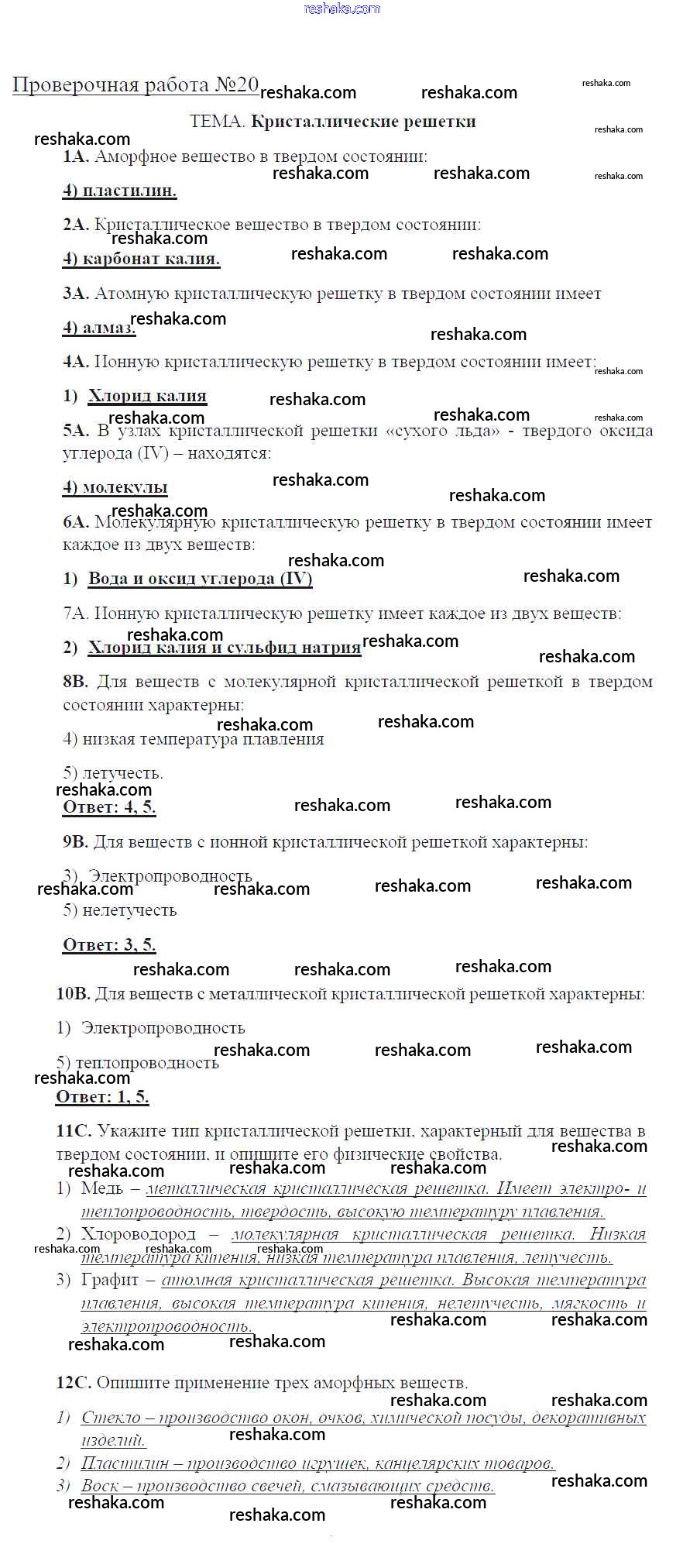 Представляем вам сборники по Химии, с готовыми ответами к Тетради для оценки качества знаний Габриелян школьной программы для учеников восьмой класса. Это не просто гдз с ответом, а с подсказками, как верно решить Проверочные работы 20. Проверяй домашку с умом и получай высший балл!