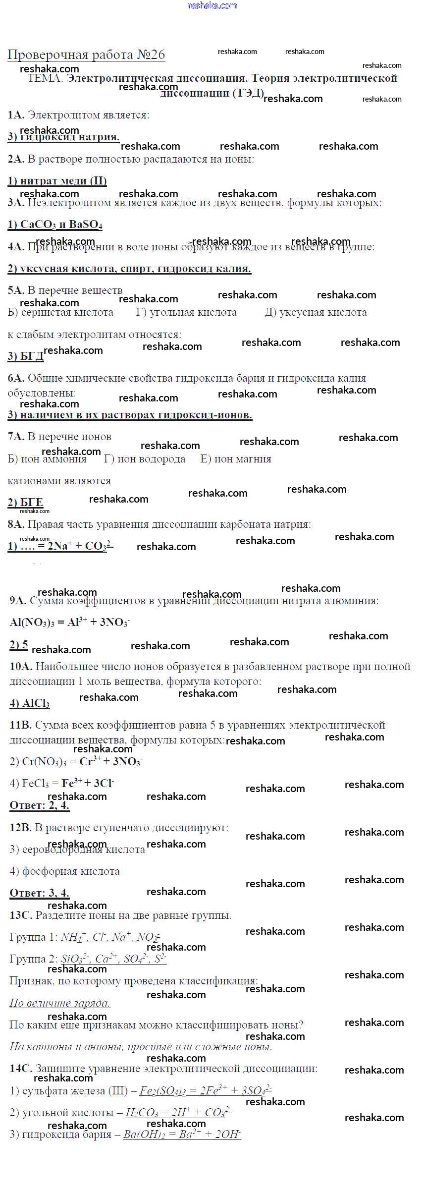 Решака - онлайн ответы Химия Габриелян, Купцова за 8 класс Тетрадь для оценки качества знаний ФГОС 2013 - 26