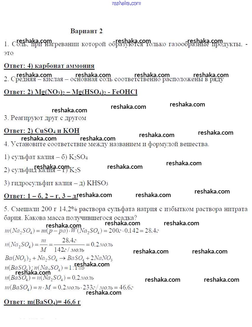 Решака - онлайн ответы Химия Габриелян, Краснова за 8 класс Контрольные работы ФГОС 2017 - 2