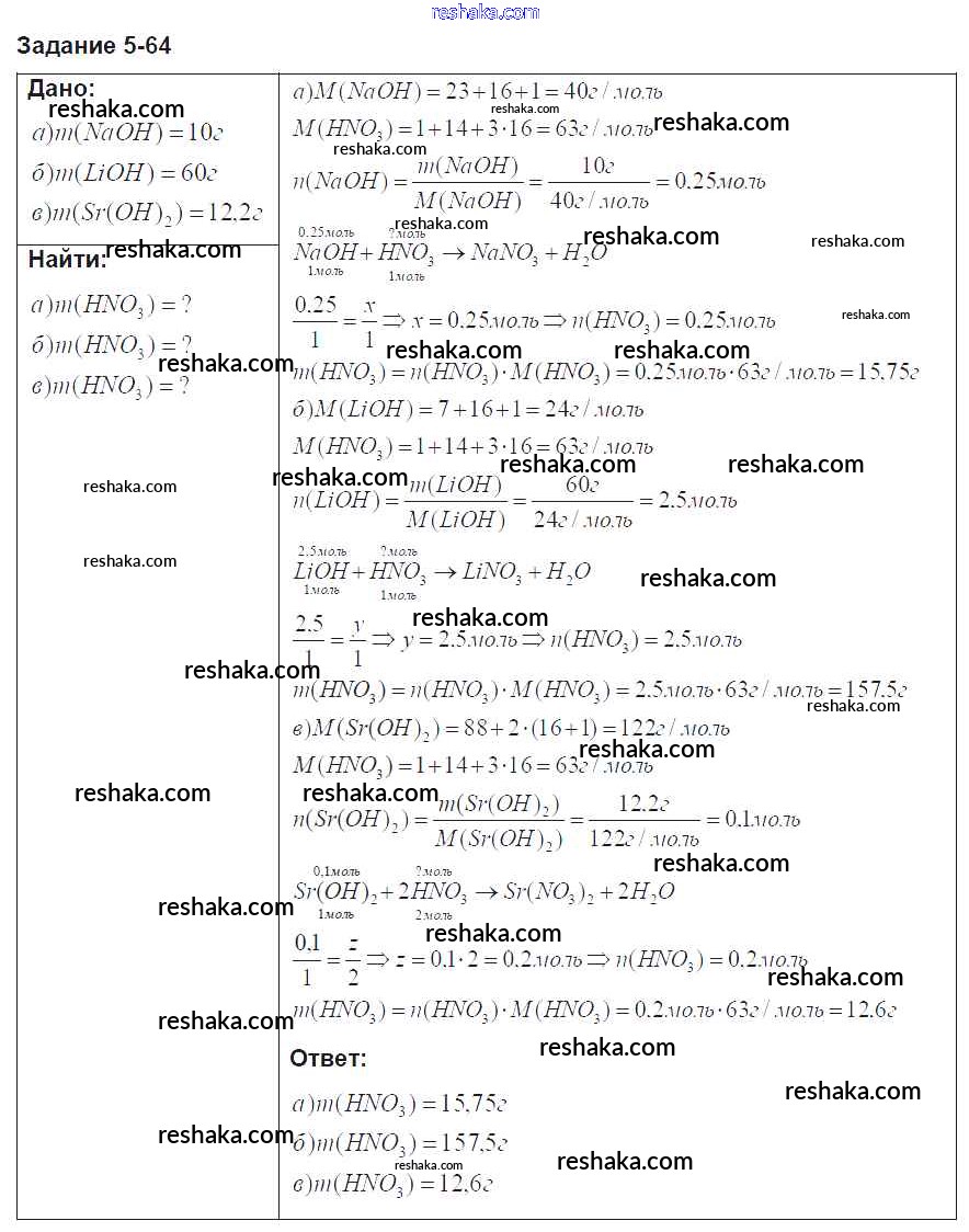 Решака - онлайн ответы Химия Кузнецова, Левкин за 8 класс Задачник ФГОС 2015 - 64