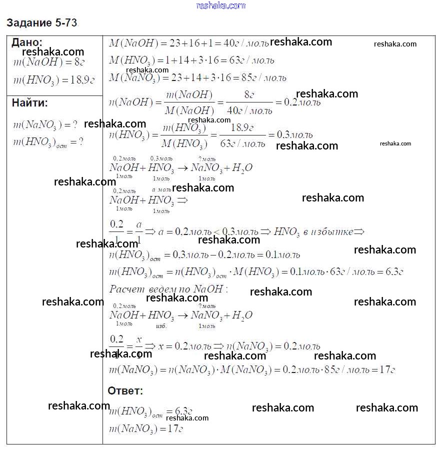 Решака - онлайн ответы Химия Кузнецова, Левкин за 8 класс Задачник ФГОС 2015 - 73