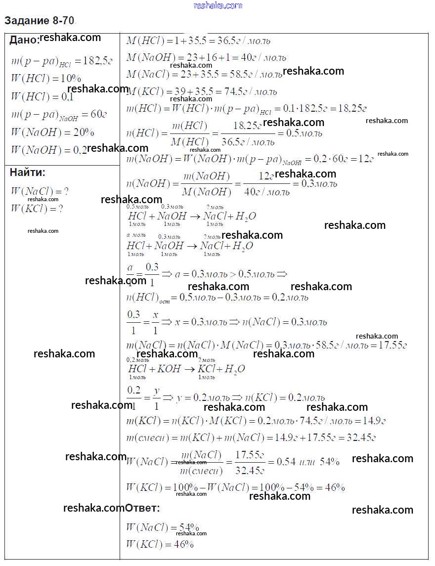Решака - онлайн ответы Химия Кузнецова, Левкин за 8 класс Задачник ФГОС 2015 - 70