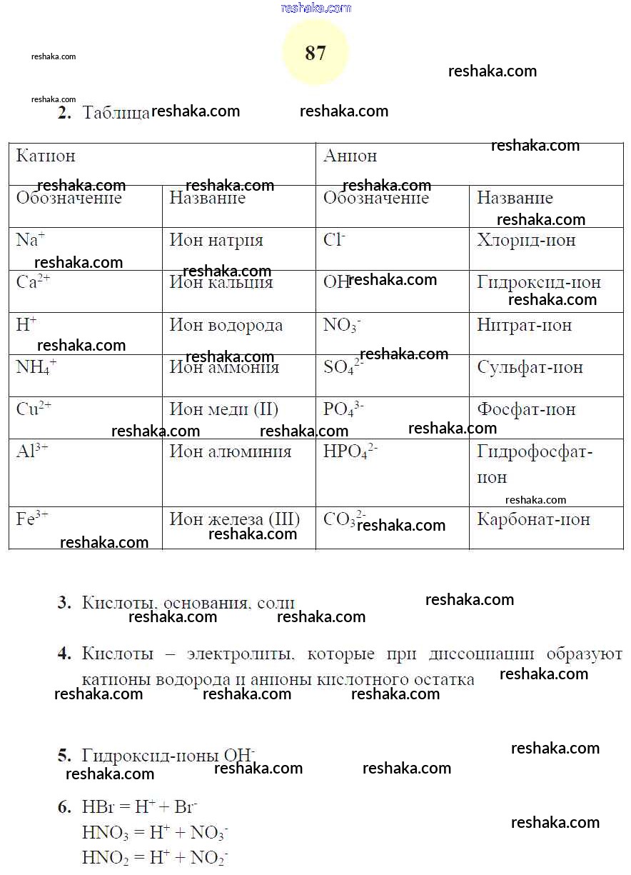 Решака - онлайн ответы Химия Микитюк за 8 класс Рабочая тетрадь ФГОС 2015 - 87